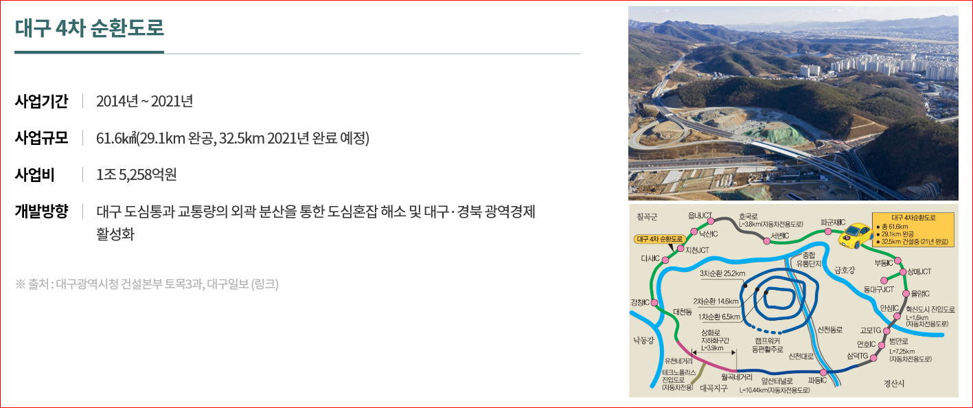 대구 4차 순환도로,대구.경북 첨단의료복합단지,율하 도시 첨단산업단지 등