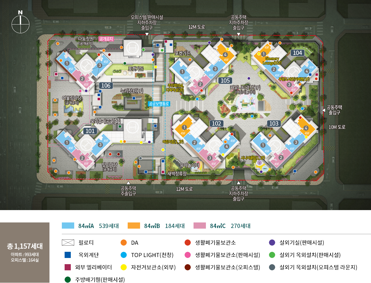 오피스텔 및 아파트는 단일평형으로 전용면적 84㎡