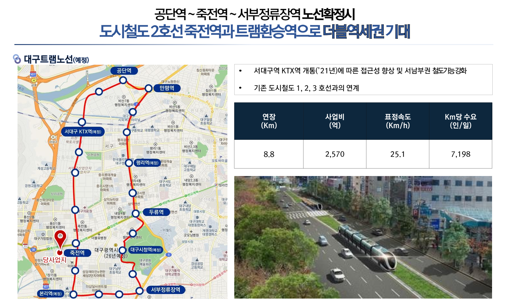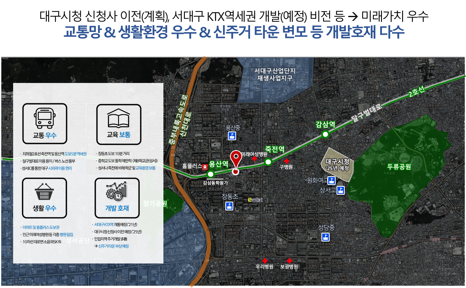 지하철 2호선 달구벌대로와 죽전역,용산역을 끼고 있어서